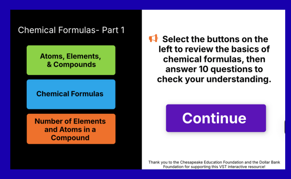 Students reinforce their understanding of chemical formulas by identifying elements and counting the number of atoms, including in formulas that contain grouped elements and coefficients.