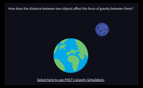 Review key forces vocabulary and explore PhET’s simulation to complete three sets of five questions. If a question set is answered incorrectly, you’ll have the opportunity to try again until you succeed.