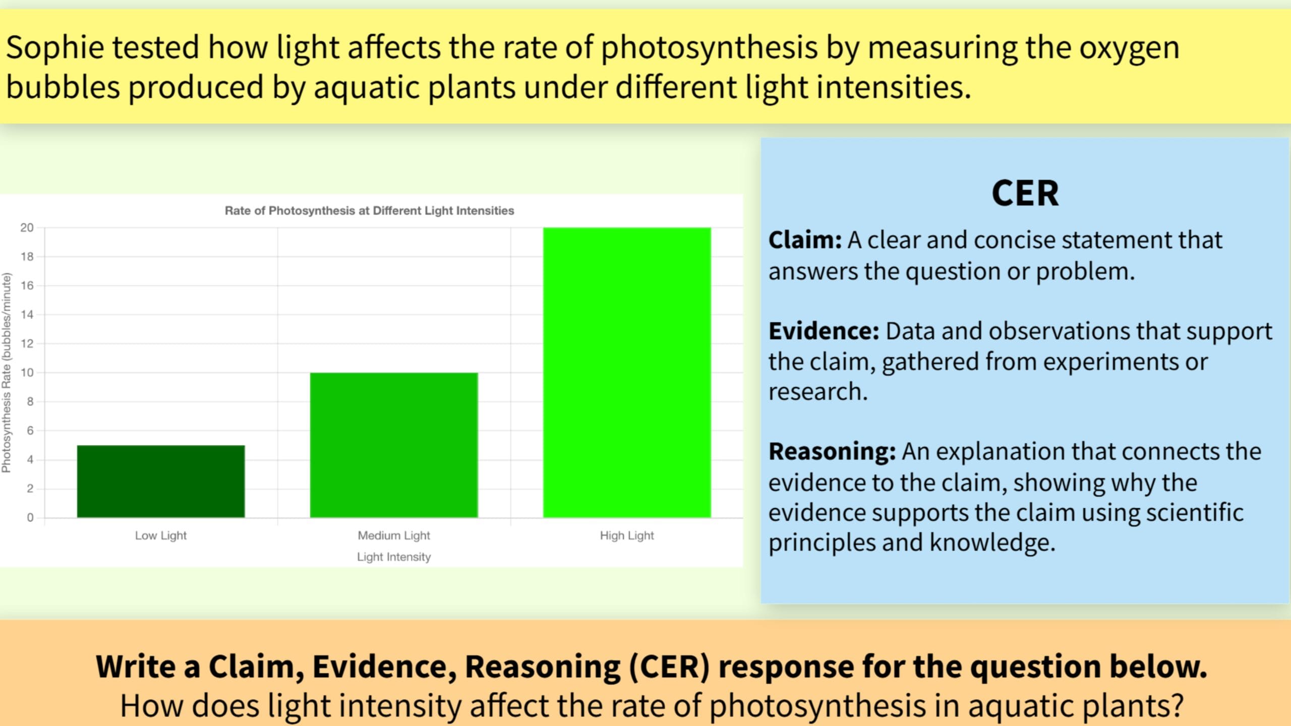 These Life Science Investigation bell ringer activities give students practice analyzing graphs from scientific investigations, identifying the independent variable, dependent variable, and constants, and using Claim, Evidence, and Reasoning (CER) to answer questions based on evidence presented in the graph.